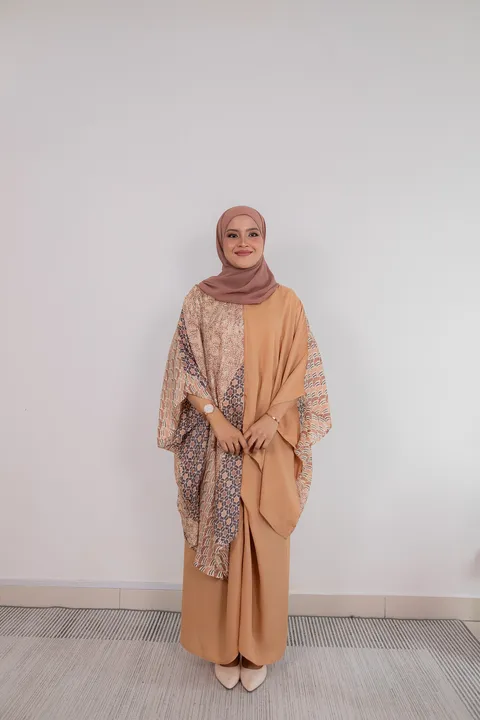 • Embroidered printed kurung kedah top with round neckline
