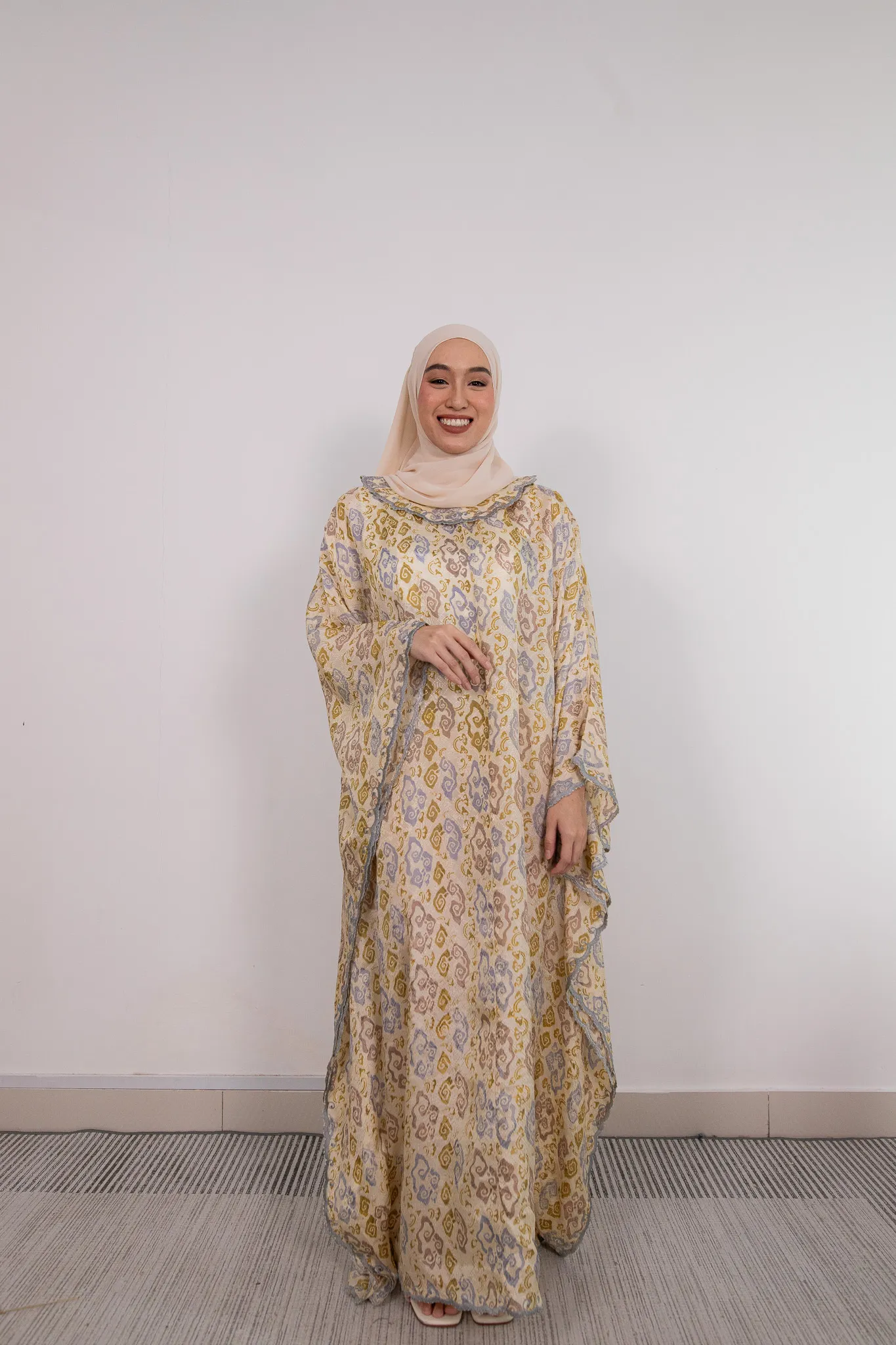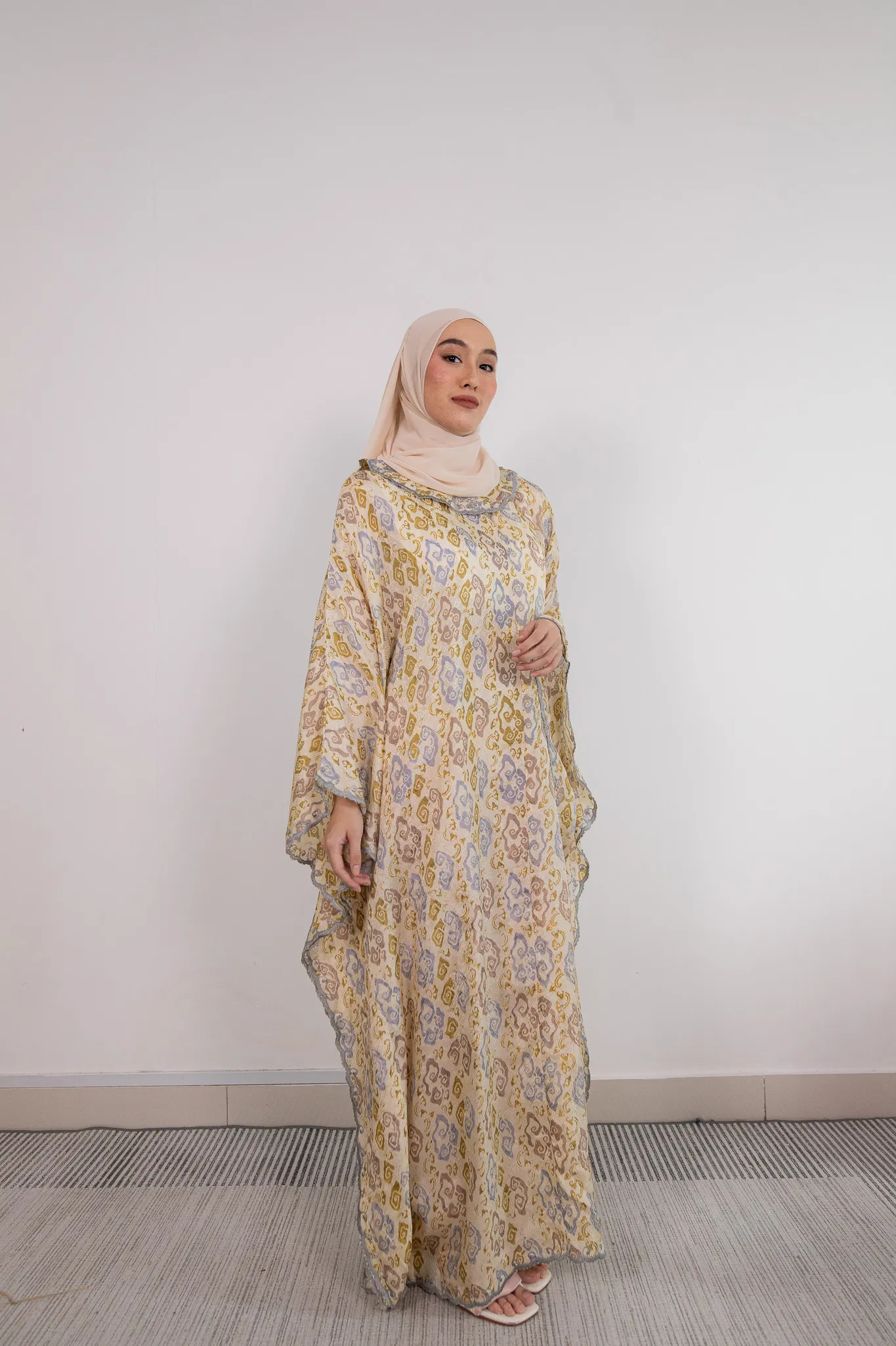 • Loose fully handrawn batik kaftan with embroidery